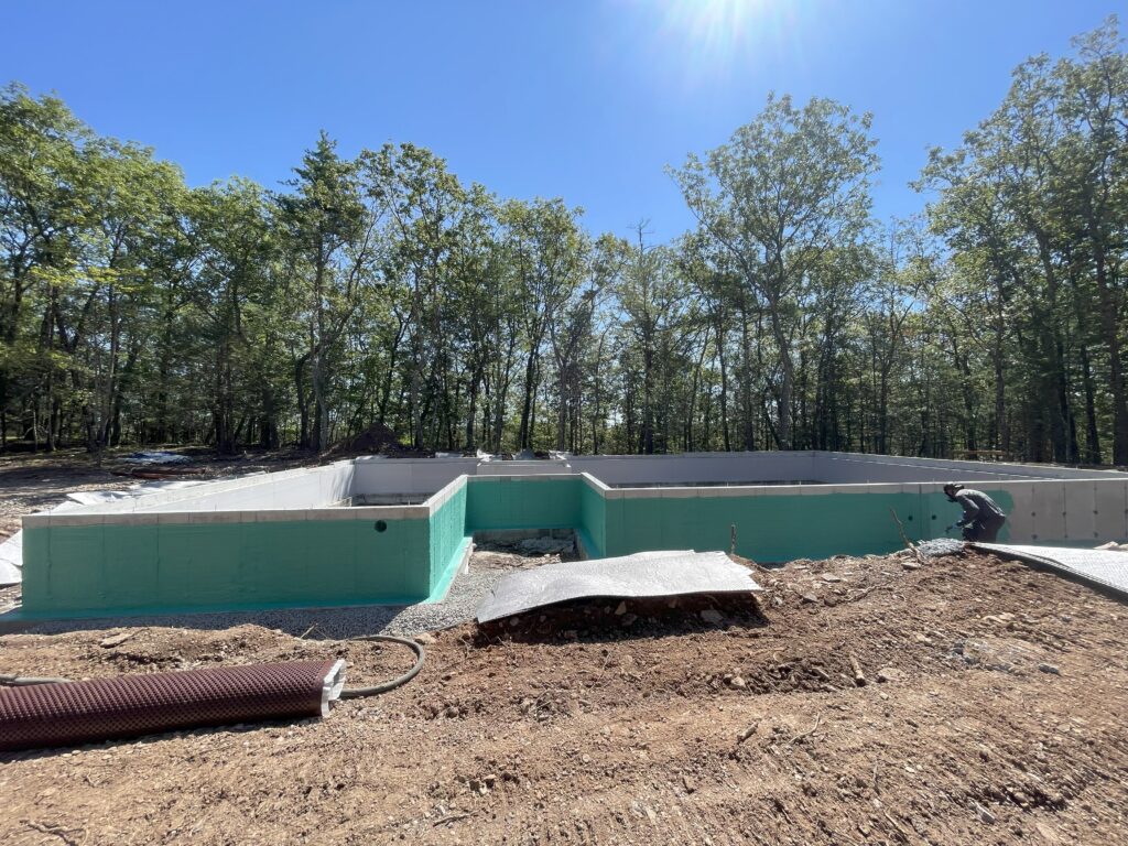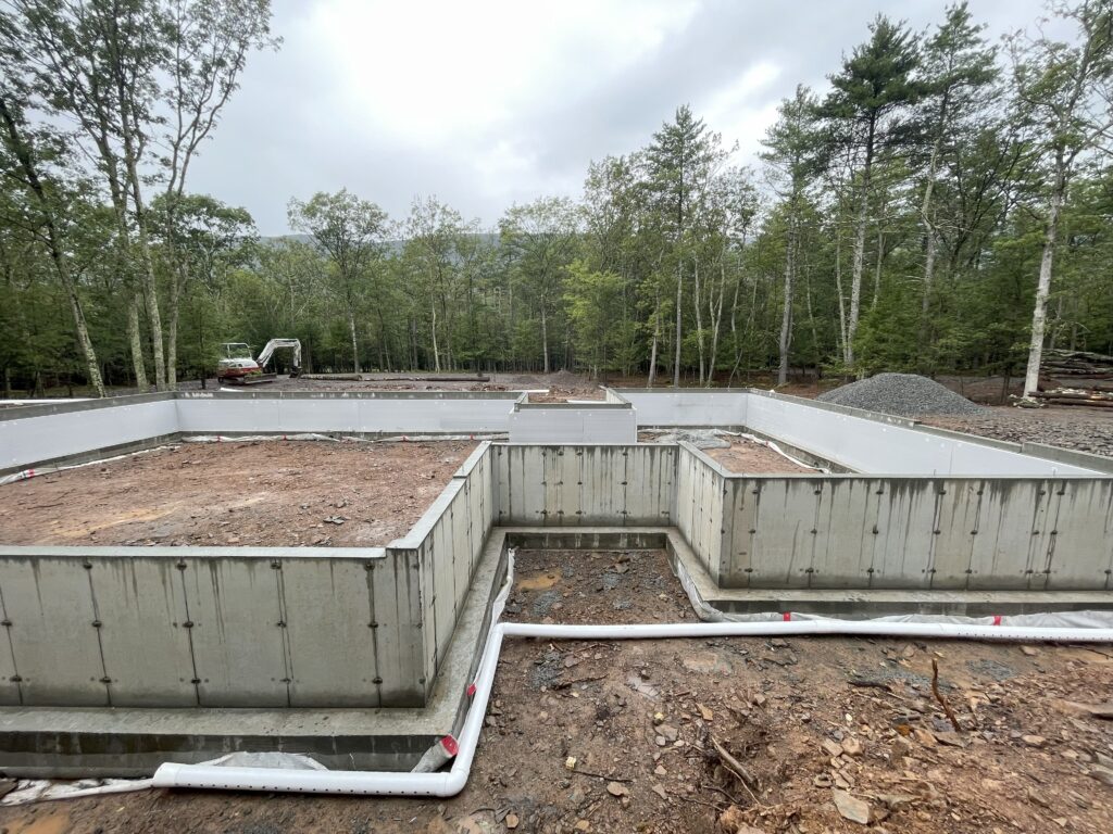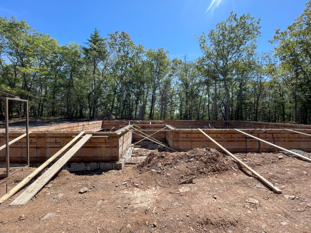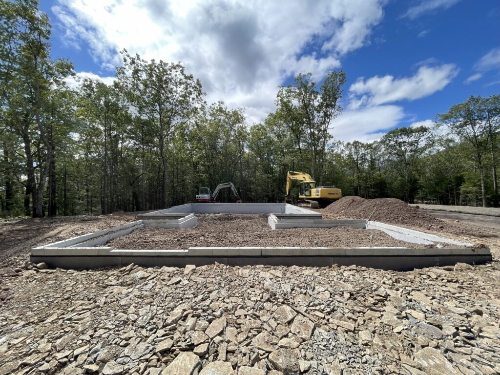 We are very excited to have started construction on our newest Catskill Terraces project – Quattro! Land was cleared for this project earlier this year. We were able to fully start construction on the home in July, meeting our clients onsite for a final stakeout. Soon after, work began on excavation and the driveway!