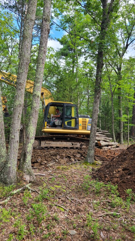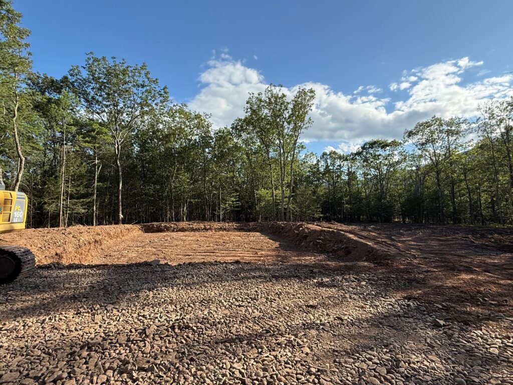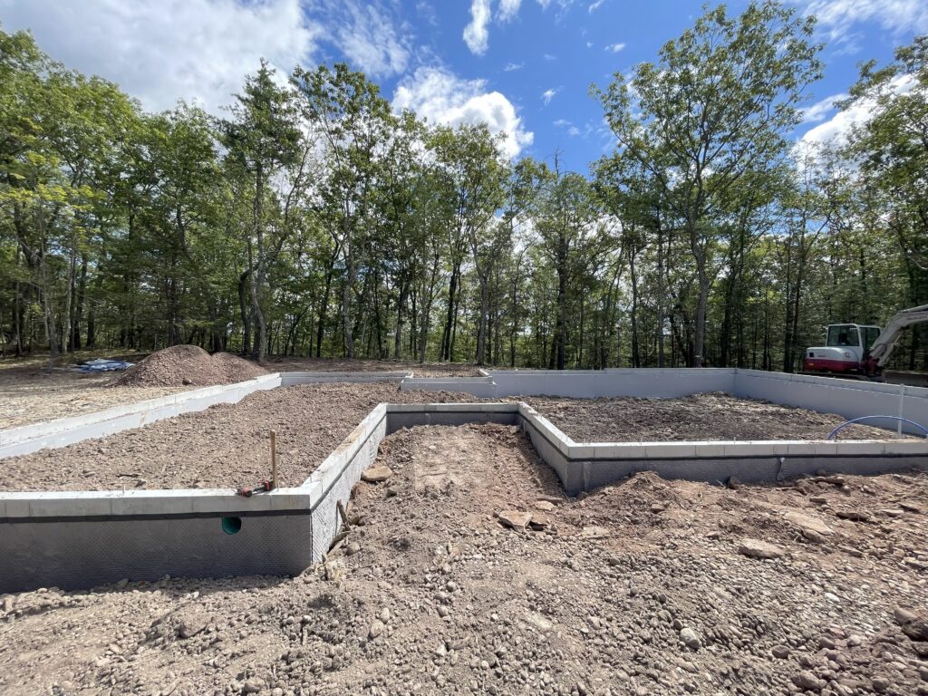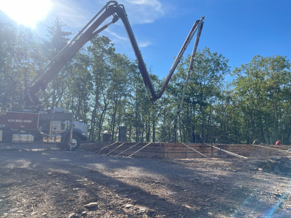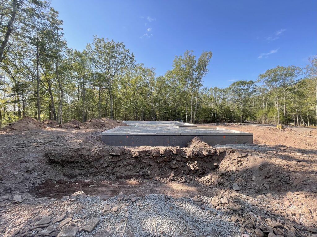 We are very excited to have started construction on our newest Catskill Terraces project – Quattro! Land was cleared for this project earlier this year. We were able to fully start construction on the home in July, meeting our clients onsite for a final stakeout. Soon after, work began on excavation and the driveway!