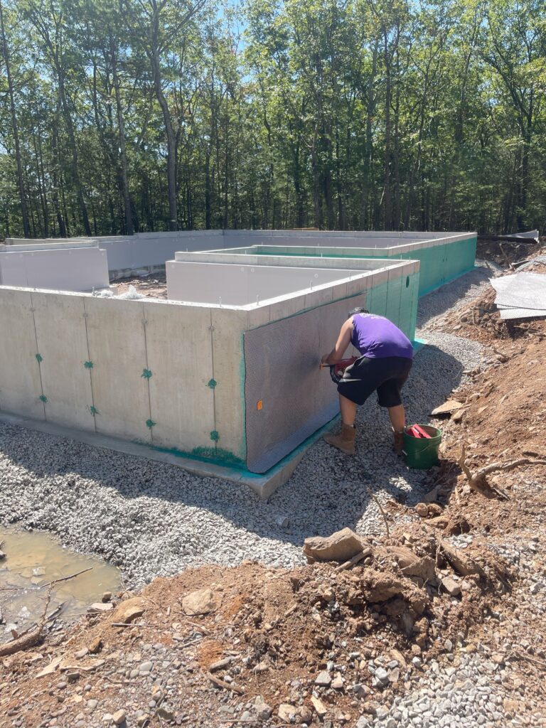 Once drainage is in place, waterproofing is applied and a drainage mat is installed to keep water moving away from the concrete foundation walls….
