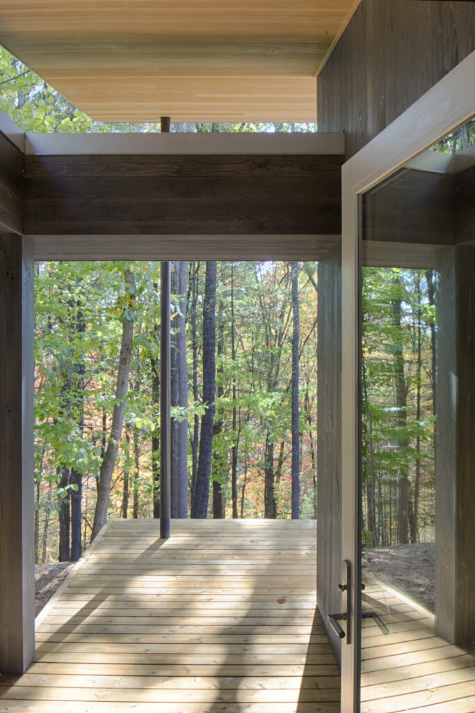 We love the way that TinkerBox both stands out from and blends in with the surrounding forest! The fall colors really help the shou sugi ban siding pop.